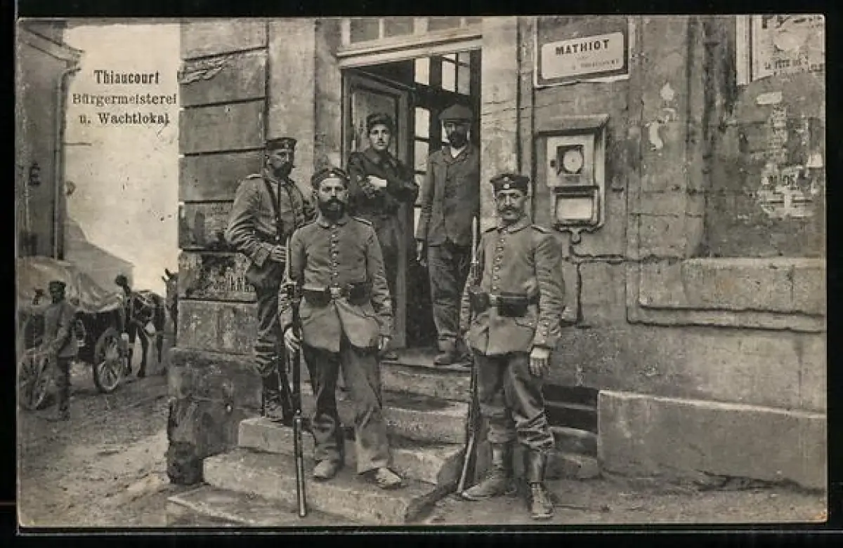 AK Thiaucourt, Bâtiment de la mairie et poste de garde avec soldats devant l`entrée