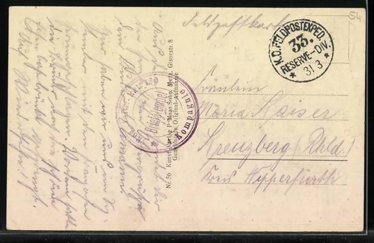 alte Ansichtskarte, gelaufen, Eckknick re. unten, Stempelspur, Abriebspur li. oben, guter Zustand