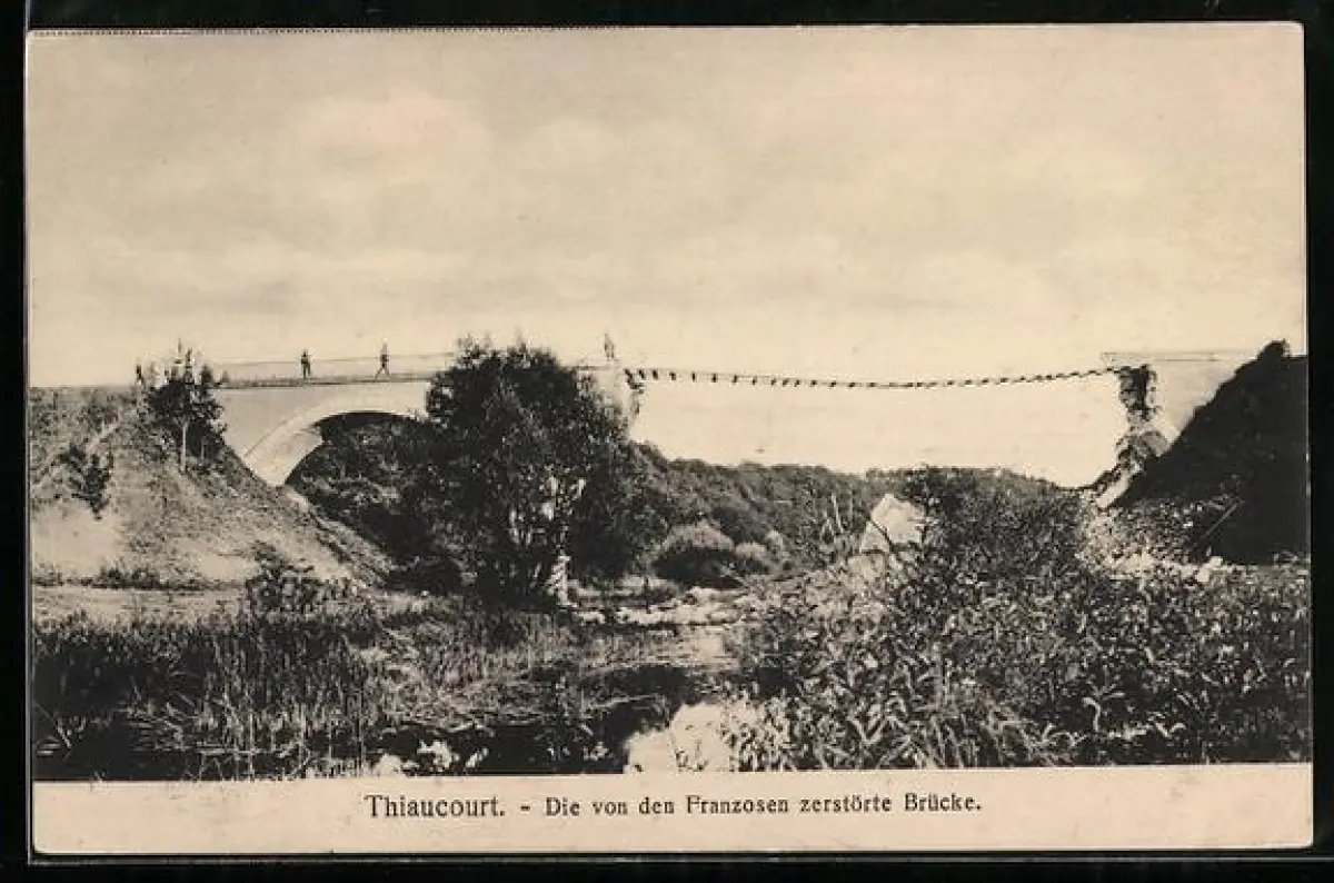 AK Thiaucourt, Blick zur zerstörten Brücke