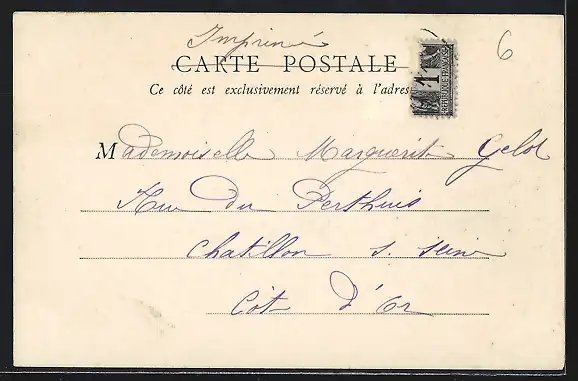 alte Ansichtskarte, gelaufen, Briefmarke entfernt, guter Zustand
