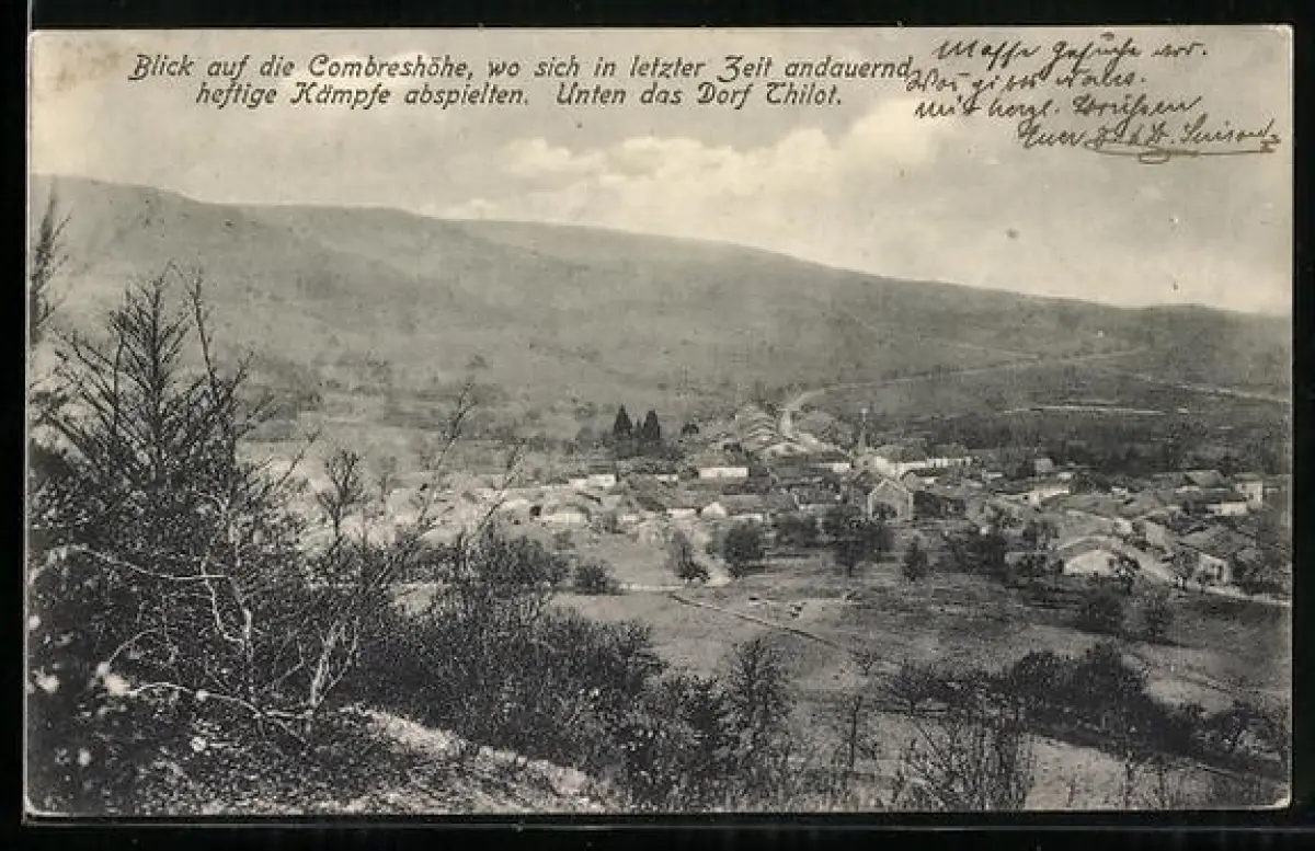 AK Thilot, Vue sur le village et la Combreshöhe où se jouaient de violents combats récents