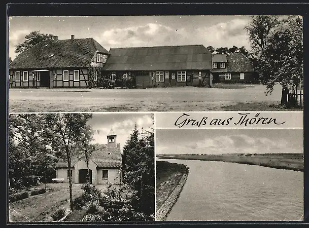 AK Thören /Lüneburger Heide, Ortsansicht mit Fluss