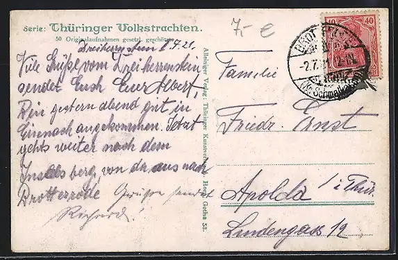 alte Ansichtskarte, gelaufen 1921, Eckknick re. oben, guter Zustand