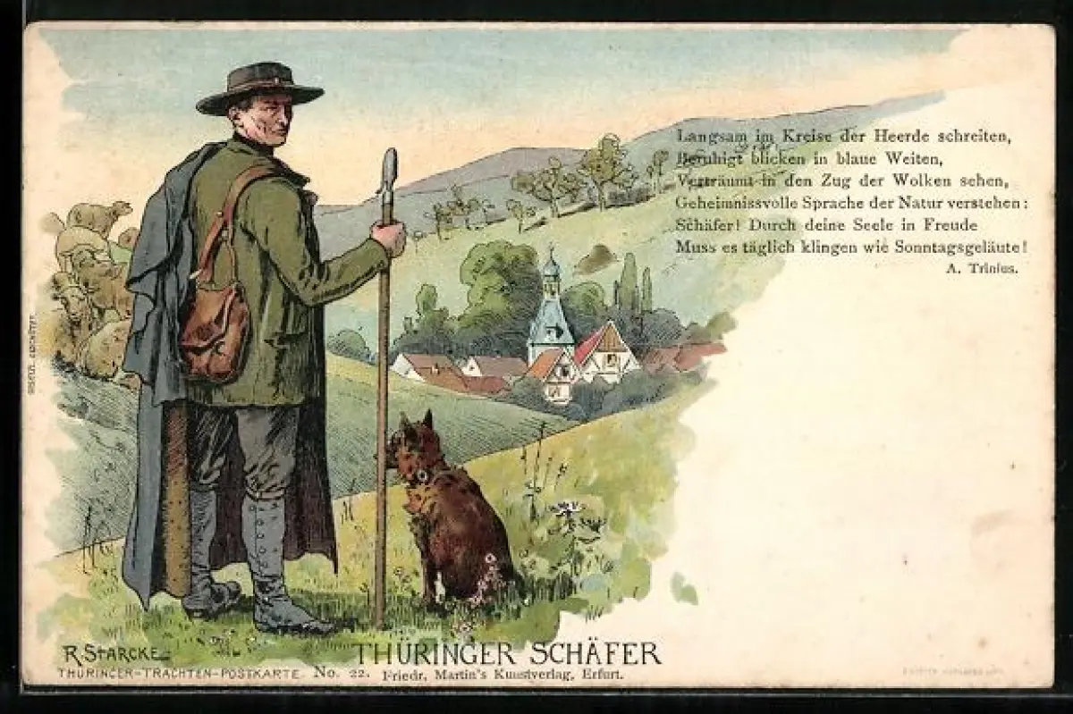 AK Thüringischer Schäfer in Trachten mit seinem Hund