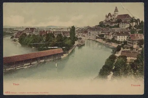 AK Thun, Blick zur Kirche über dem Ort