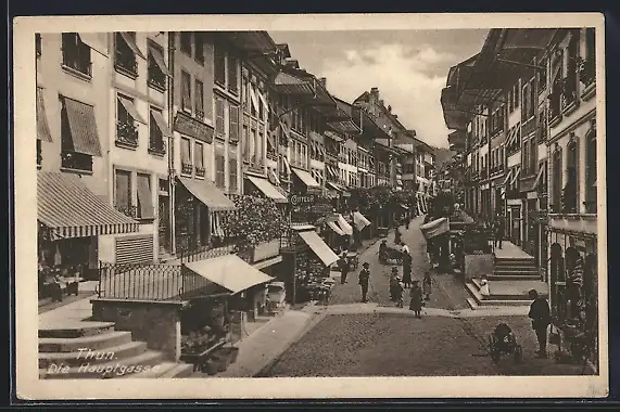 AK Thun, Strassenleben und Geschäfte auf der Hauptgasse