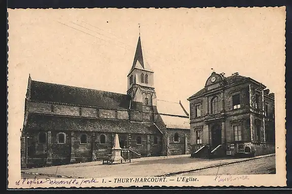 AK Thury-Harcourt, L`église et le bâtiment voisin