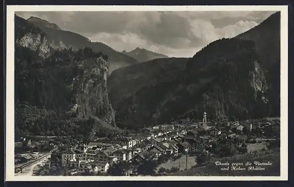 AK Thusis, Totalansicht gegen Viamala und Hohen Rhätien