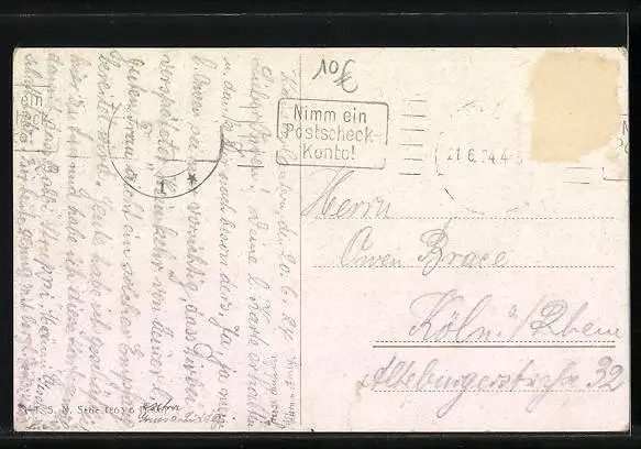 alte Ansichtskarte, gelaufen, Briefmarke entfernt, rückseitig Oberflächenschaden, guter Zustand