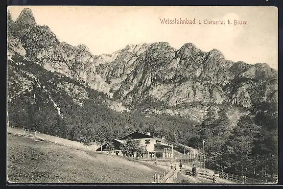 AK Tiers b. Bozen, Ortspartie in Weisslahnbad