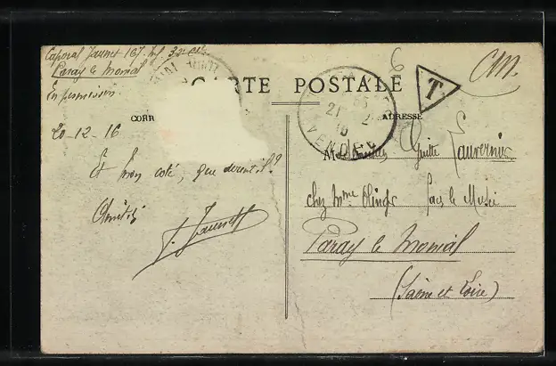 alte Ansichtskarte, gelaufen 1916, Briefmarke entfernt, rückseitig Oberflächenschaden, guter Zustand