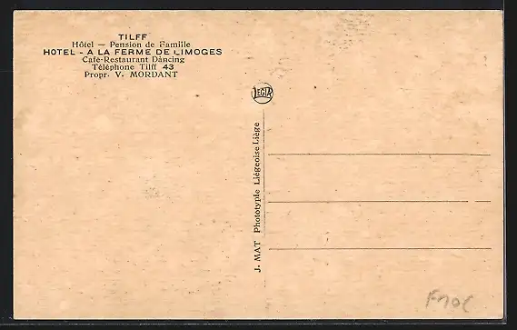 AK Tilff, Hotel a la Ferme de Limoges, Propr. V. Mordant