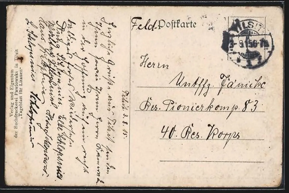 alte Ansichtskarte, gelaufen 1915, Eckknicke re., guter Zustand