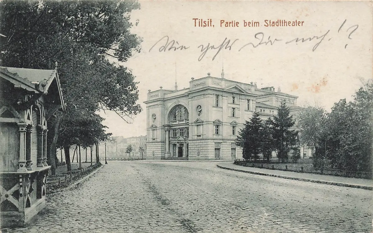 AK Tilsit Partie Stadttheater Ostpreussen 1915 gelaufen Feldostkarte