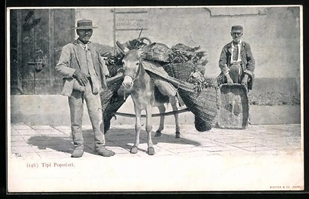 AK Tipi Popolari, italienischer Händler mit Maultier