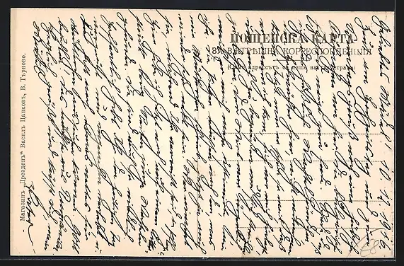 Personenbezogene Daten auf der Rückseite der Karte wurden durch blauen Textmarker unkenntlich gemacht. Die blauen Stellen sind auf die Vorderseite durchgeweicht und wirken sich negativ auf das Postkartenfoto aus