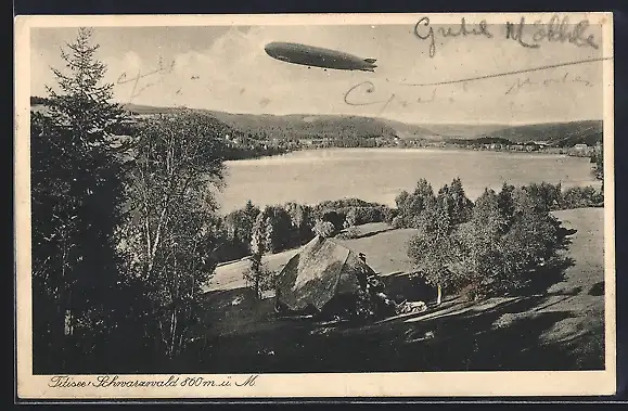 AK Titisee /Schwarzwald, Zeppelin über dem See