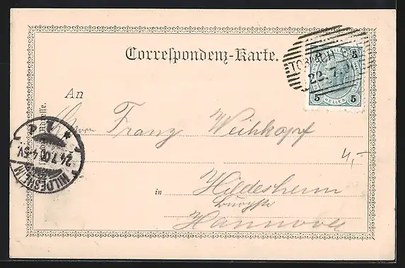 alte Ansichtskarte, gelaufen 1900, Eckknick re. unten, Stempelspur, guter Zustand