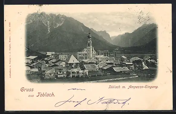 AK Toblach, Ortsansicht mit Ampezzo-Eingang