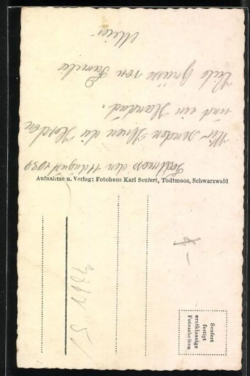 AK Todtmoos, Geschnitzter Wegweiser, Trachtengruppe