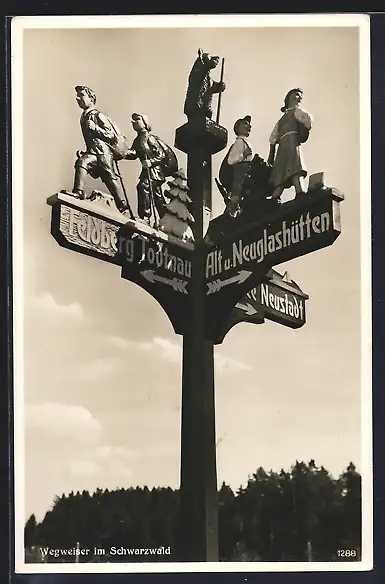 AK Todtnau /Schwarzwald, Wegweiser Feldberg Todtnau und Alt u. Neuglashütten