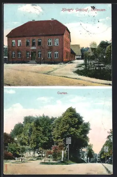 AK Tötensen, Königs Gasthof, Strassenpartie mit Garten