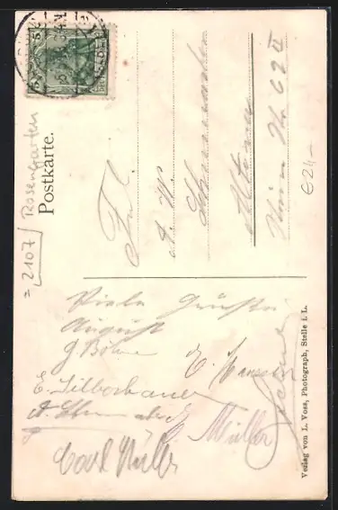 Personenbezogene Daten auf der Rückseite der Karte wurden durch blauen Textmarker unkenntlich gemacht. Die blauen Stellen sind auf die Vorderseite durchgeweicht und wirken sich negativ auf das Postkartenfoto aus