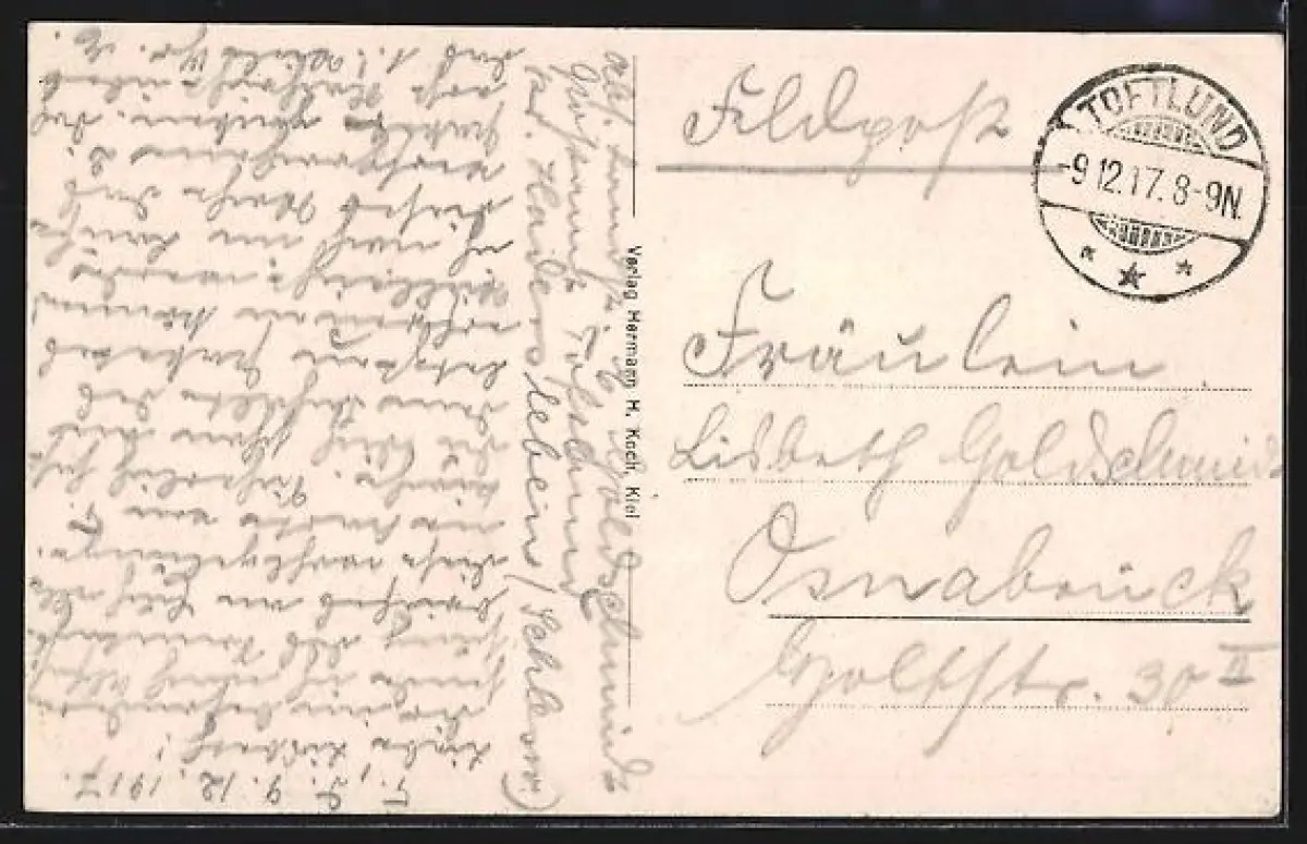 gelaufen 1917 als Feldpost, guter Zustand