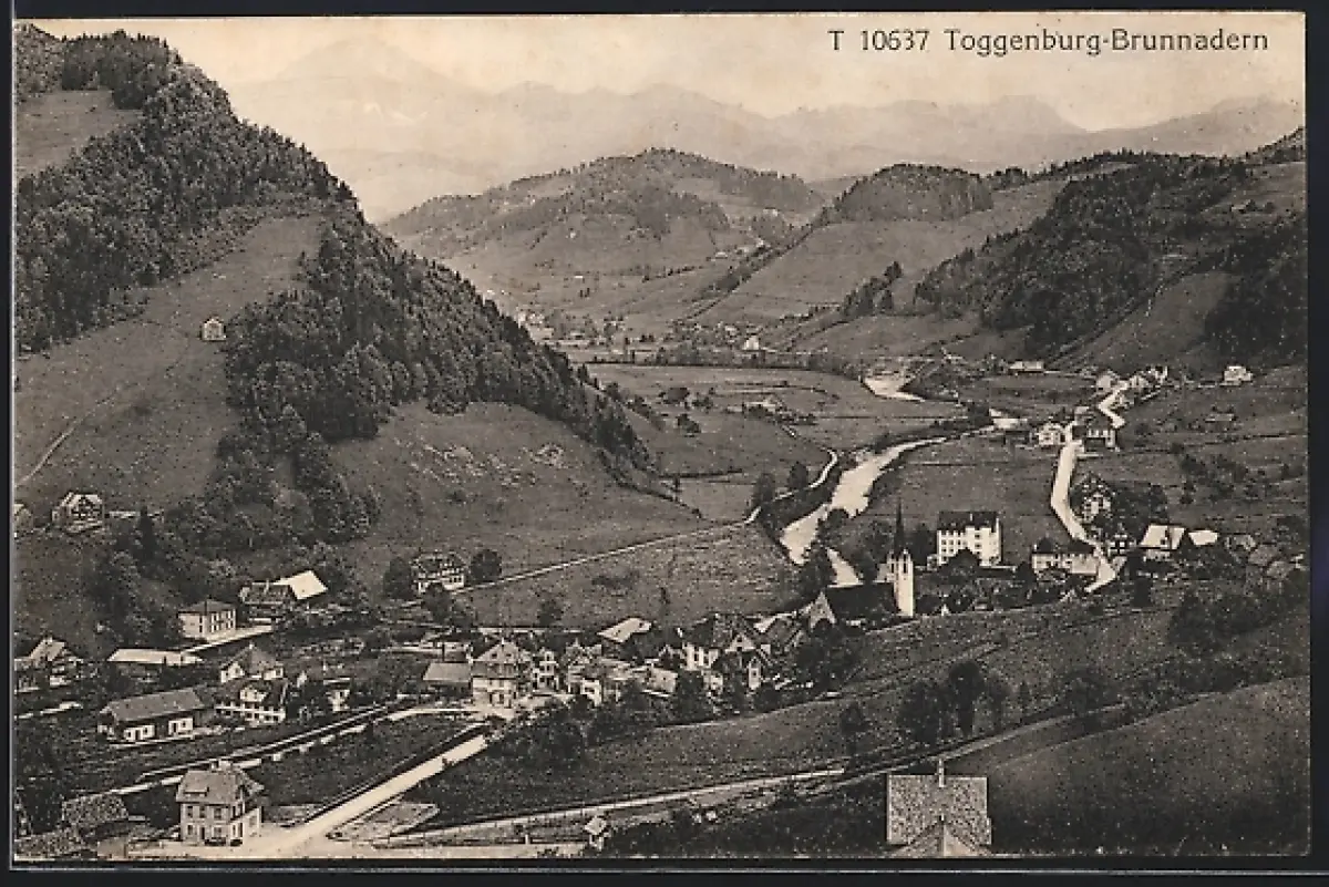 AK Toggenburg-Brunnadern, Ortsansicht aus der Vogelschau