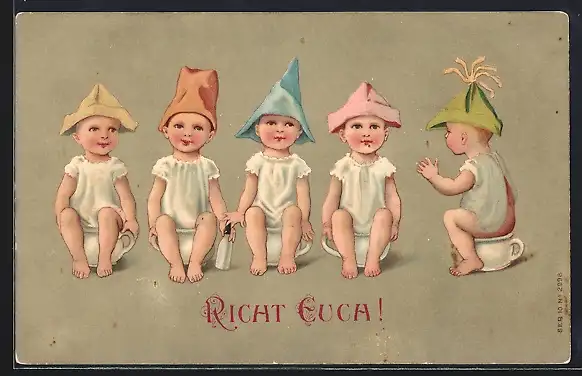 AK Toilettenhumor, Richt Euch!, Kindein Reih und Glied auf dem Nachttopf