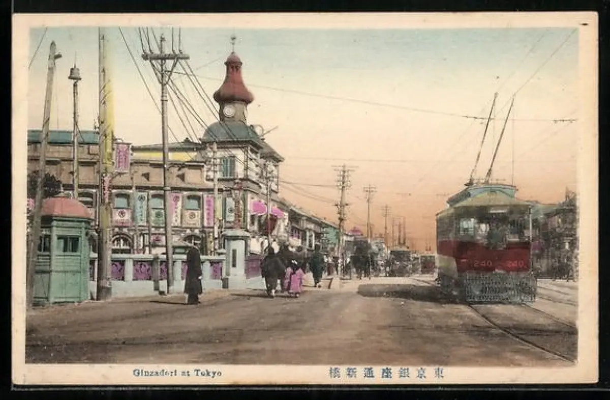 AK Tokyo, Ginzadori at Tokyo, Strassenbahn