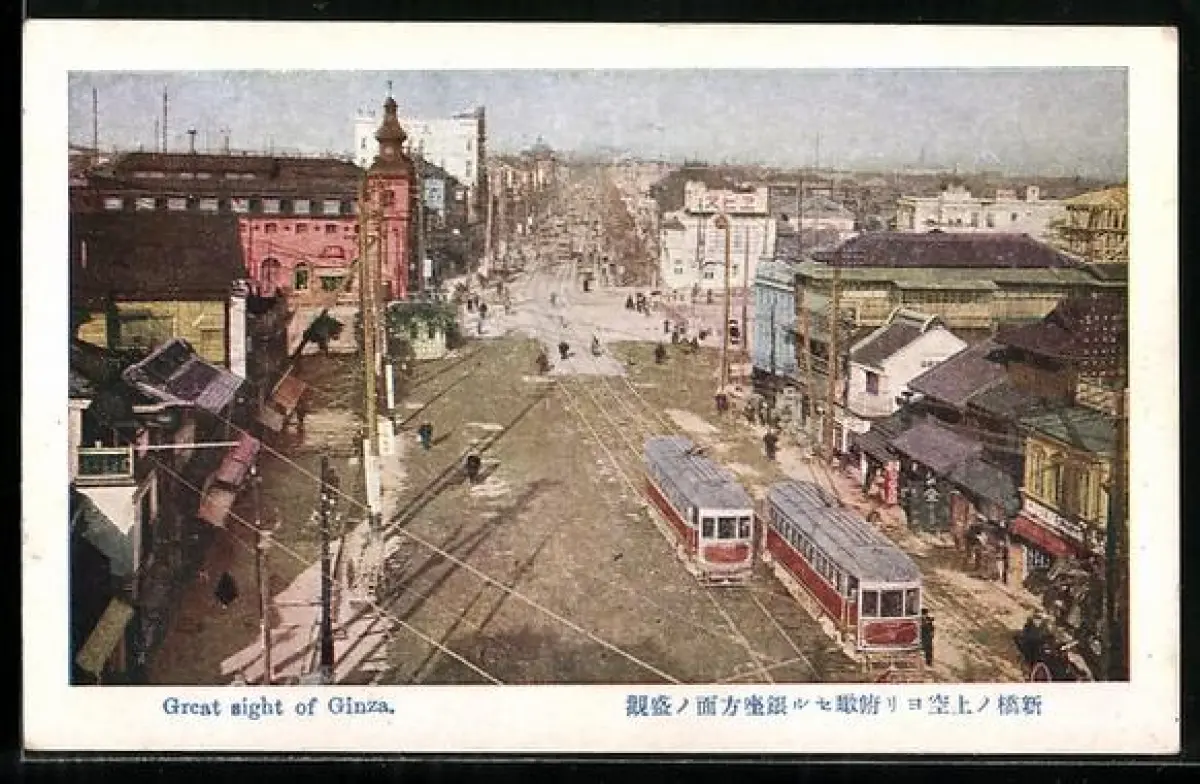 AK Tokyo, Great sight of Ginza, Strassenbahn