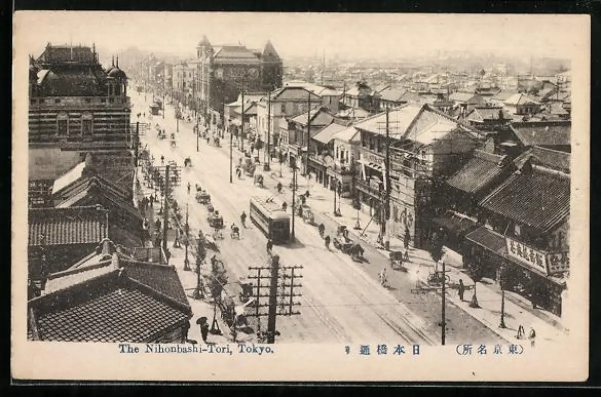 AK Tokyo, The Nihonbashi-Tori, Strassenbahn