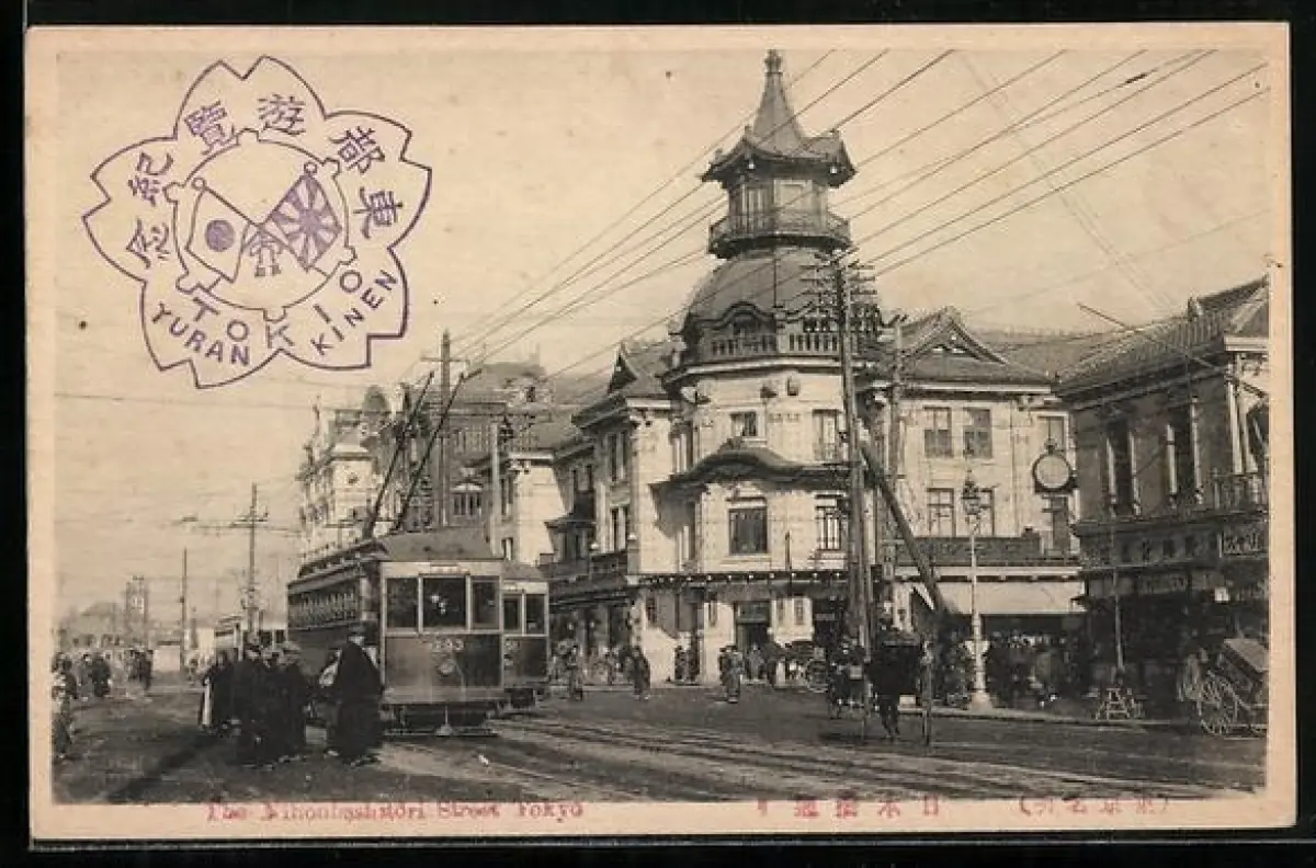AK Tokyo, The Nihonbashitori Street, Strassenbahn