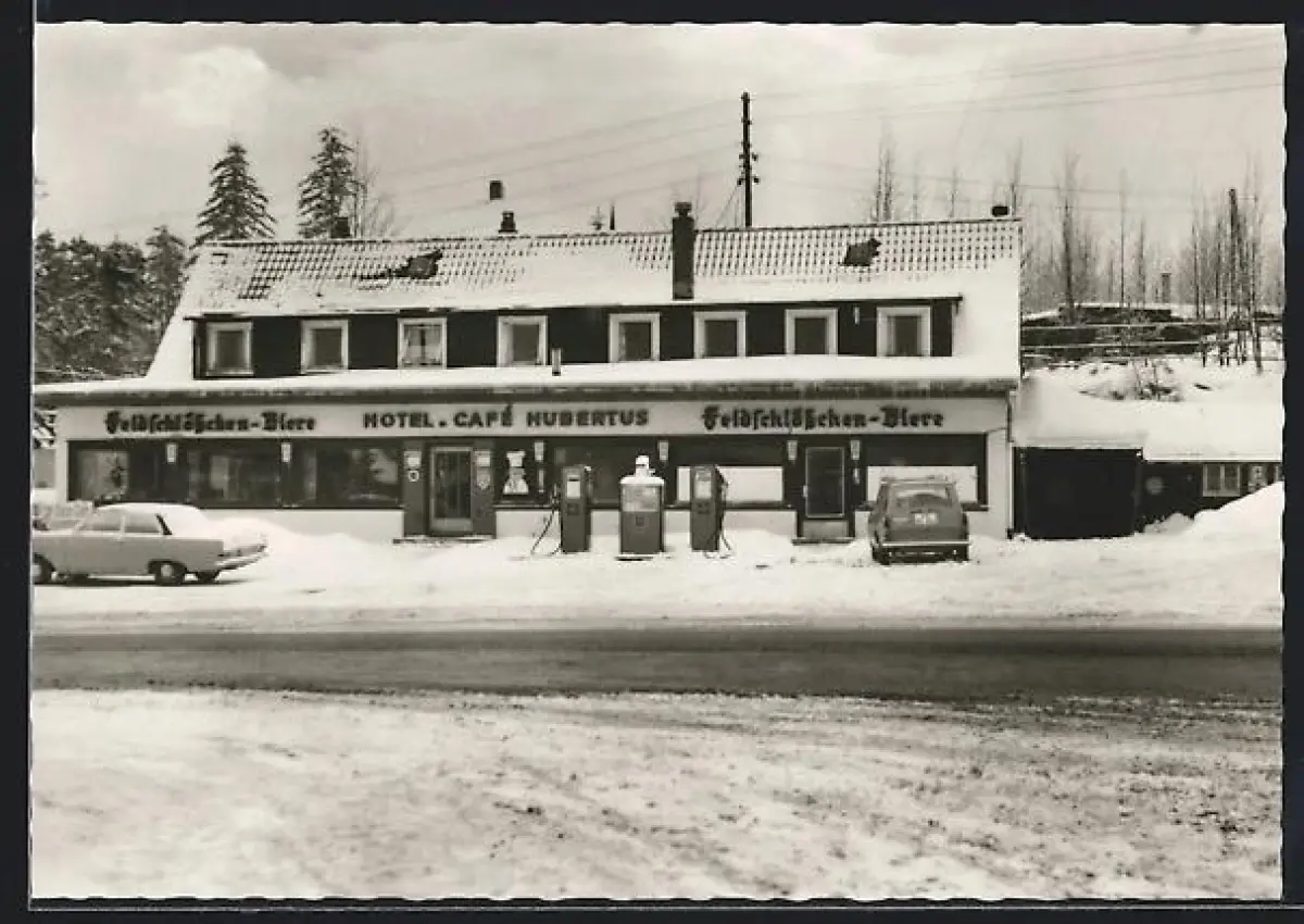 AK Torfhaus /Oberharz, Hotel Café Hubertus, Inh. Heinz Schäfer, Tankstelle, Winteransicht