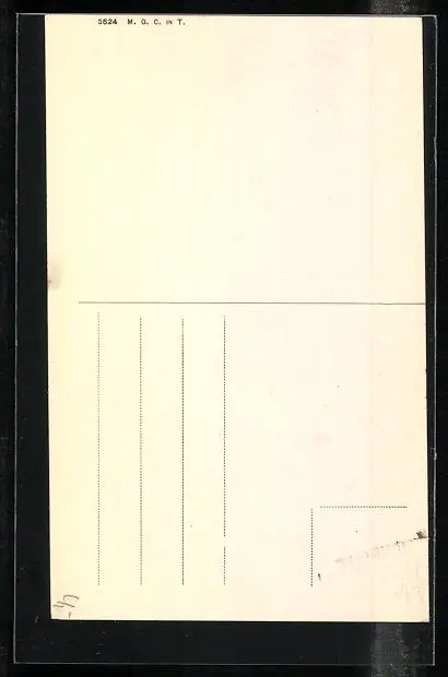 Personenbezogene Daten auf der Rückseite der Karte wurden durch blauen Textmarker unkenntlich gemacht. Die blauen Stellen sind auf die Vorderseite durchgeweicht und wirken sich negativ auf das Postkartenfoto aus