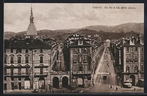 AK Torino, Via Po e Via della Zecca, Strassenbahn