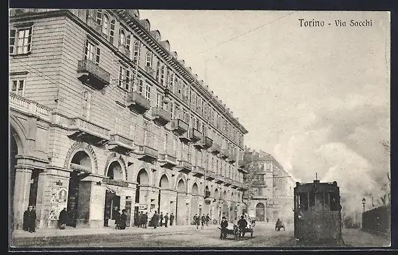 AK Torino, Via Sacchi, Strassenbahn