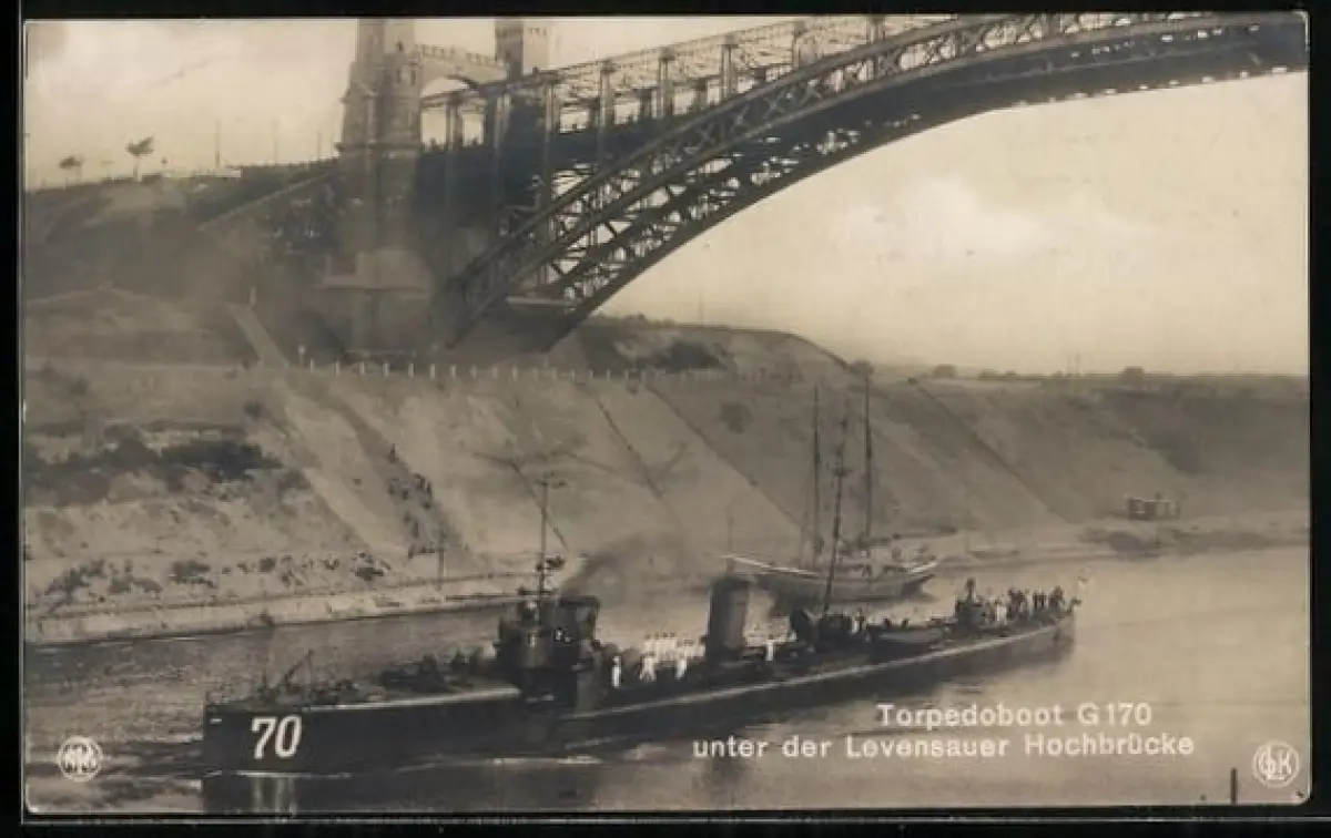 AK Torpedoboot G-170 unter der Levensauer Hochbrücke