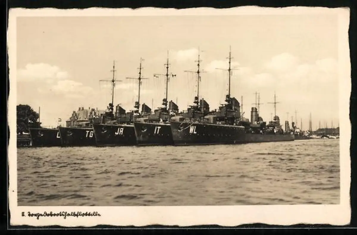 AK Torpedoboote Luchs, Tiger, Jaguar, Iltis und Wolf der II. Torpedobootshalbflottille im Hafen