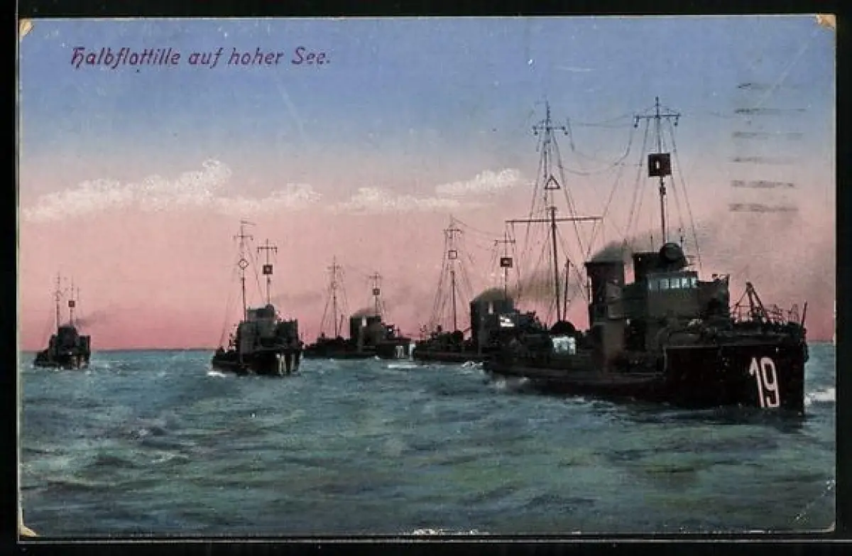 AK Torpedoboots-Halbflottille auf hoher See, vorn Torpedoboot S-119