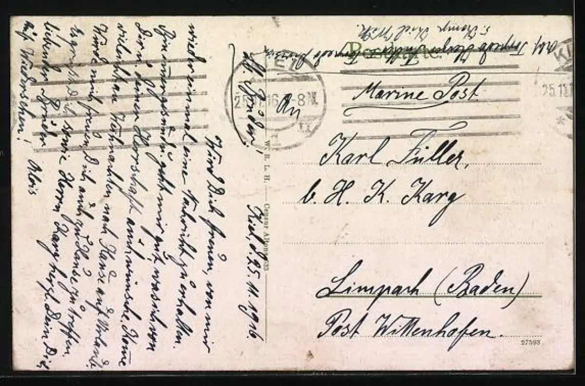 alte Ansichtskarte, gelaufen 1916 als Feldpost, Eckknick rechts oben und rechts unten, sonst guter Zustand