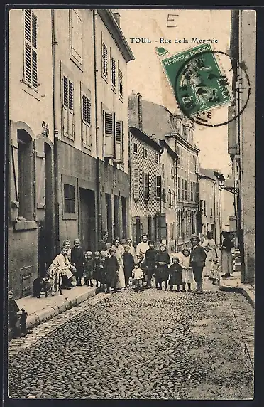 AK Toul, Rue de la Monnaie avec habitants posant dans la rue pavée