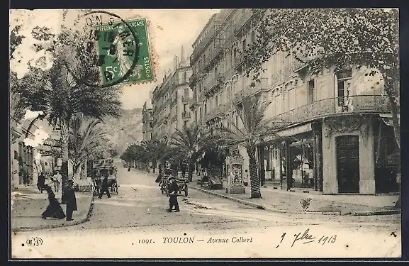 AK Toulon, Avenue Colbert avec palmiers et passants animés