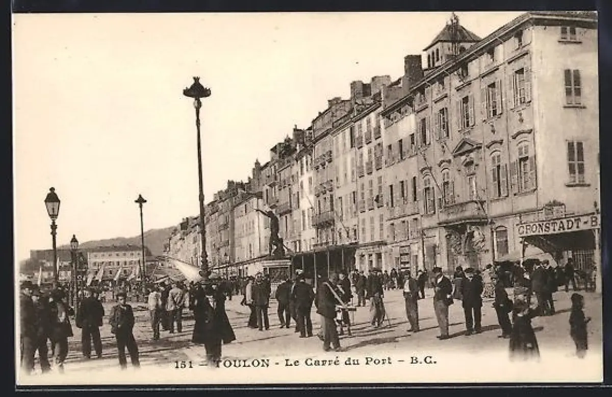 AK Toulon, Le Carré du Port, scène animée sur le quai