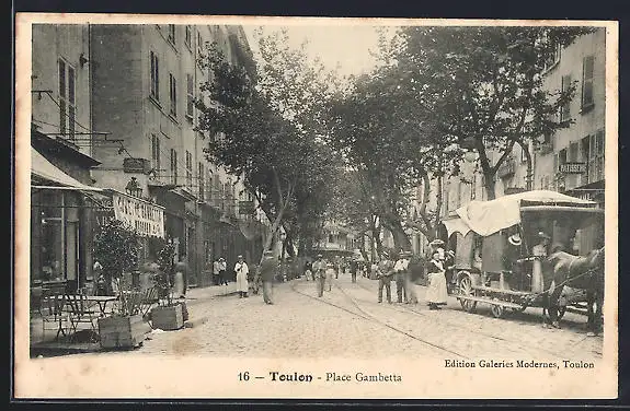 AK Toulon, Place Gambetta avec calèche et passants animés