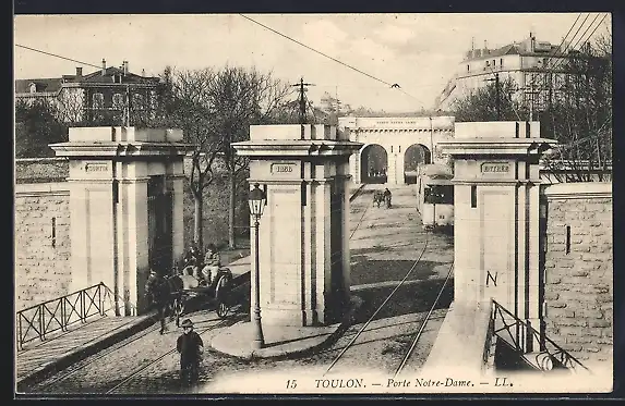 AK Toulon, Porte Notre Dame, Strassenbahn