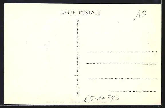 Personenbezogene Daten auf der Rückseite der Karte wurden durch blauen Textmarker unkenntlich gemacht. Die blauen Stellen sind auf die Vorderseite durchgeweicht und wirken sich negativ auf das Postkartenfoto aus