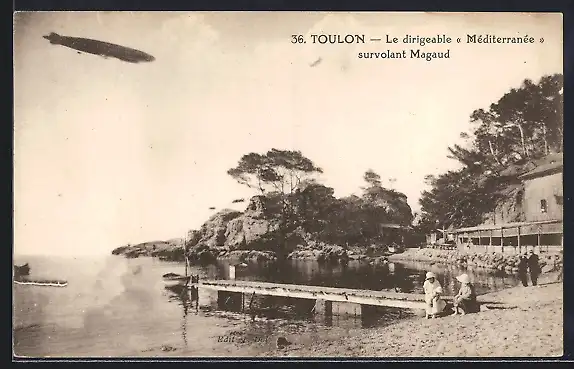 AK Toulon, Zeppelin dirigeable Méditerranée survolant Magaud