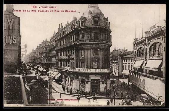 AK Toulouse, Entrée de la Rue d`Alsace et Rue de Rémusat